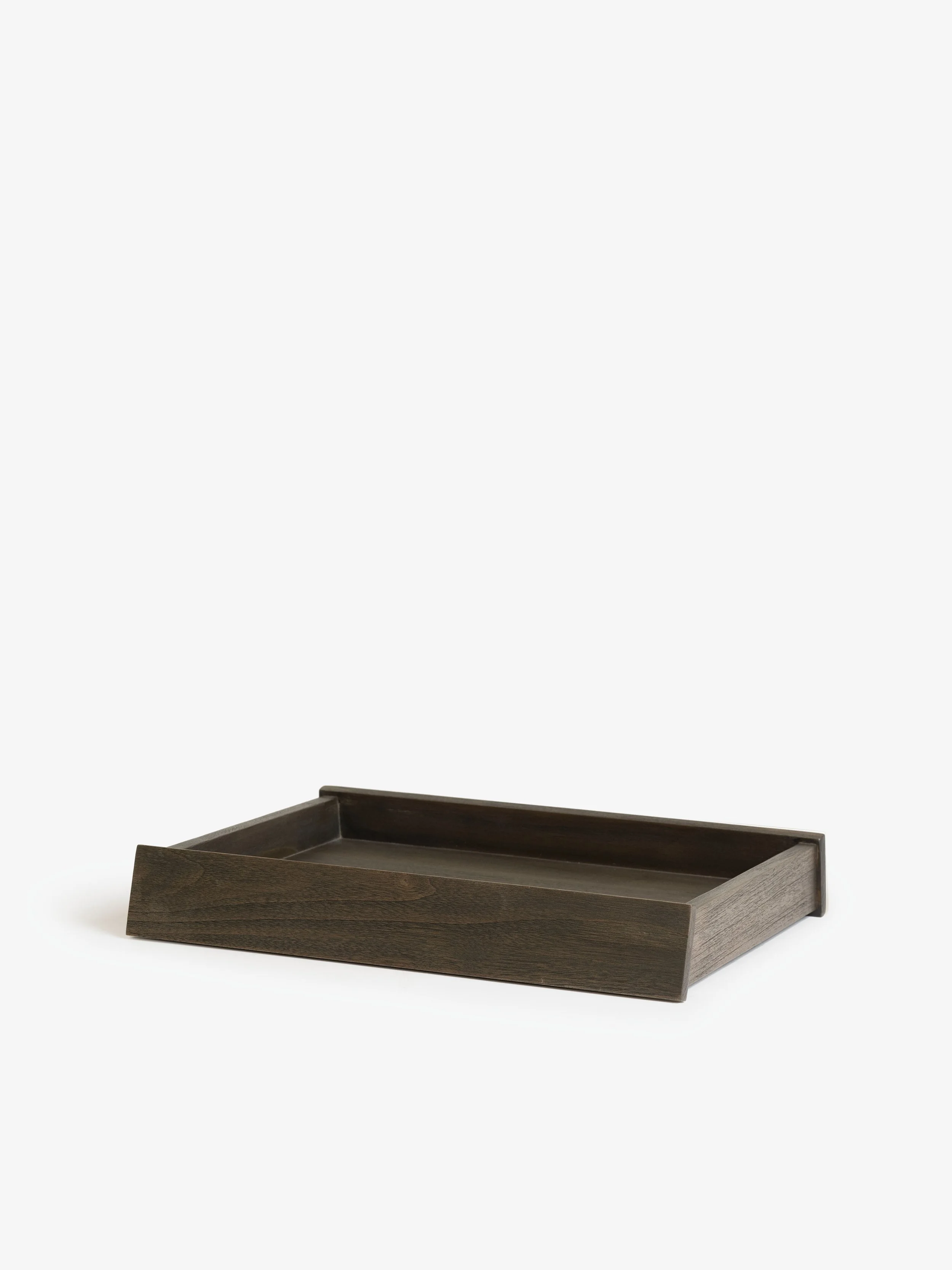 The Eave feature an angled wooden strip that runs along the side of the tray, allowing the trays to be continuously stacked.