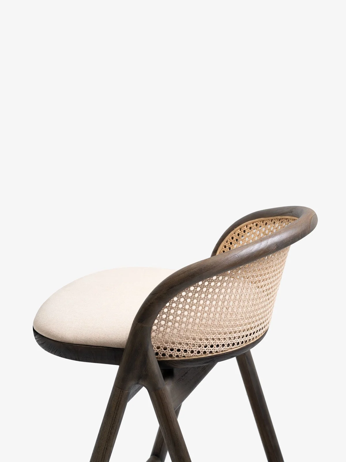 Framing the rattan cane detailing, its distinctive side profile loops around the back to form a supportive, enveloping backrest—inviting its users to, well… enter.