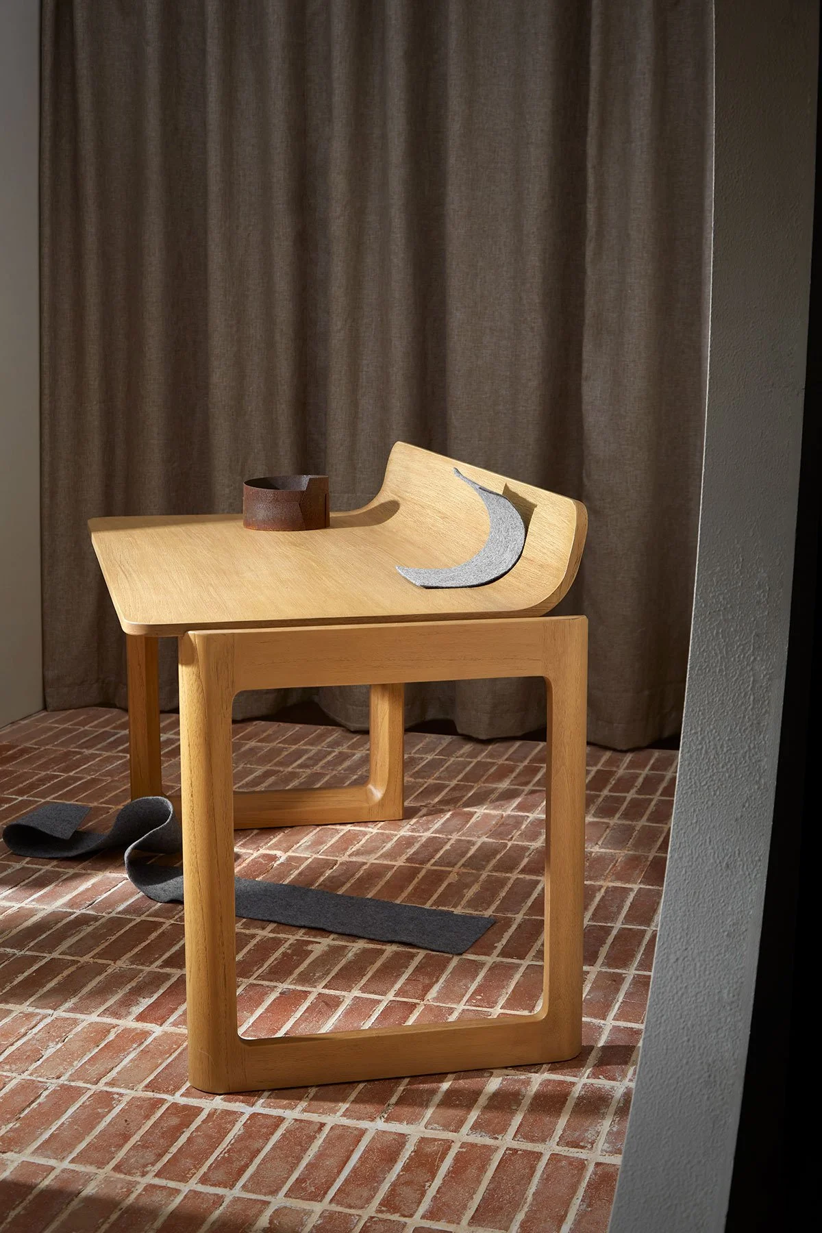 A new playful take on a working desk, Peel features an iconic bent veneer top that peels away towards the front—as if presenting itself to its user.